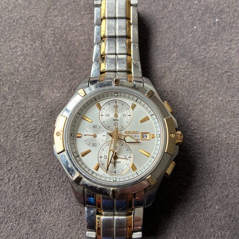 Pen vintage Seiko Chronograph i stål. Ukjent årsmodell. Selges "as is".
