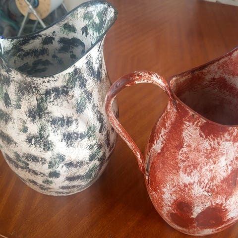Vintage håndmalte messing mugger.
