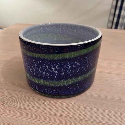 En veldig dekorativ bolle håndlaget på 60-tallet i Danmark av kunstneren Kirsten Nielsen.