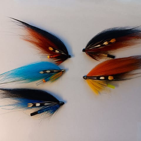 Rydder opp i flueboksene og selger unna 82 stk laksefluer. Fluer i forskjellige størrelser, noen med og noen uten fortynging, fluer som dekker de fleste forhold. Alt fra tidlig på sesongen for store og kalde elver til senere på sesongen med mindre og varmere vann. Noen brukt, men hele og en del helt ubrukte.