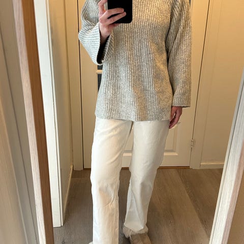 Veldig fin strikkegenser, men får dessverre ikke brukt den da jeg syns den klør (klør av alt med litt ull i).