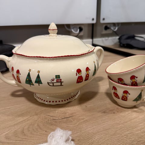 Ønsker å kjøpe 1-2 serveringsskåler og 6 Farris/vann glass i juleservice Christmas tree fra woods and sons