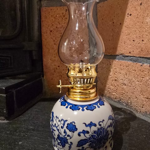 Gammel oljelampe i god stand. Jeg har ikke brukt det, mulig tidlige eiere har brukt den.