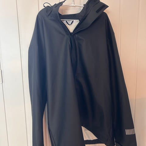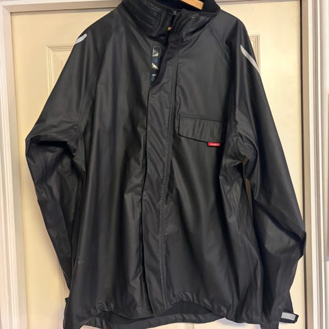 Dressmann regntøy i svart farge, størrelse XXL. Designet for menn, ideell for utendørs bruk i våte værforhold. Laget med materialer som beskytter mot regn.