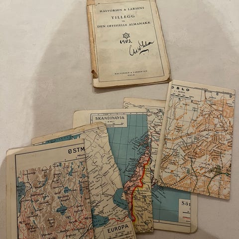 Alle mål cirka mål. Høyde X bredde. Målene er delvis inkludert tekstil over kartet. Enkelte av kartene har angitt år.