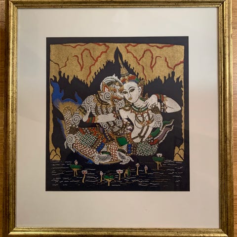 Selger et sjeldent og nydelig vevet kunstverk fra Sumatra, Indonesia. Dette kunstverket ble kjøpt rundt 1998 og er laget med en spesiell vevteknikk og tråd som gir et detaljert og unikt uttrykk. Det er profesjonelt innrammet med eksklusivt kunstglass for å bevare kvaliteten og øke kunstverkets estetiske verdi.