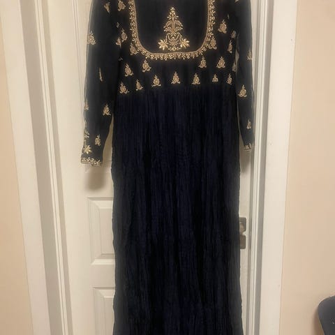 Kjole kjøpt i oktober 2024 selges billig. Brukt 1 gang. Det følger med dupatta (sjal). De 3 siste bildene i annonsen er av den faktiske kjolen. Gratis frakt. Kan brukes av en mehndi-brud.