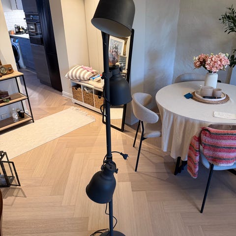 IKEA Hektar gulvlampe med 3 spotlys, lys grå. Nypris 1395,-. Ingen synlige bruksmerker. Hver lampe skrus på hver for seg.