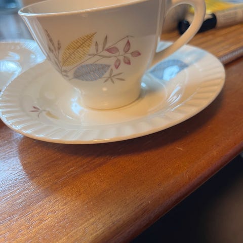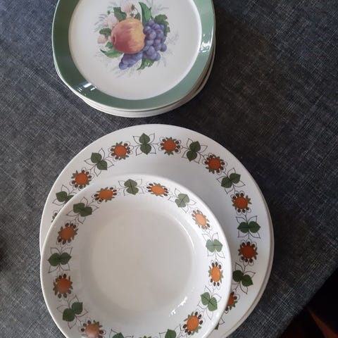 Tre middagstallerkener og fire suppetallerkener, alle merket Figgjo Flint. Pene i glasuren, har ikke vært i oppvaskmaskin. Små skjolder på to av de flate. Selges samlet.