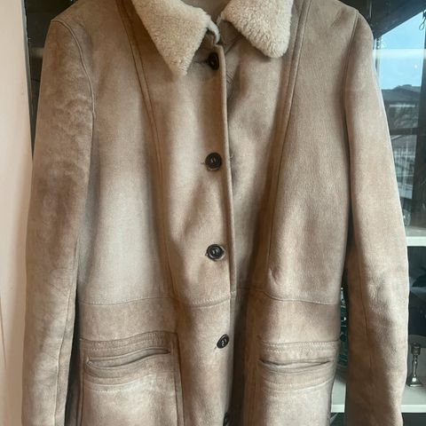 Jakken er laget av ekte saueskinn, og er myk og behagelig.