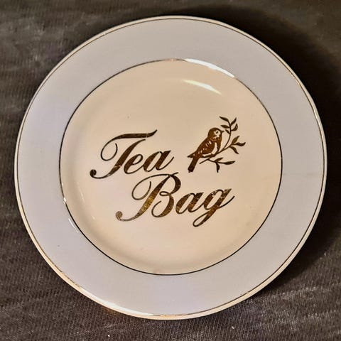 6 stykk vintage svensk teabag holdere. Selges for 165 kr per stykk på nett/ebay. Søte til teselskap eller til frokostbordet med familien ❤️ eller med venninner. Legges ved siden av frokost tallerkene og legger teposene på når du er ferdig med den. 11 cm lange og 7,5 cm høye.