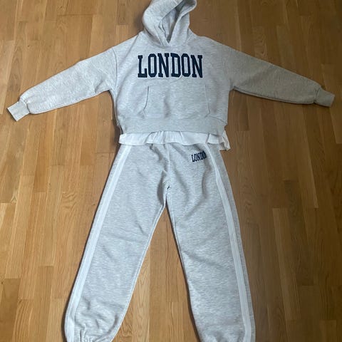Pent brukt joggedress fra Cubus str 134/140. Har mistet ene metalldelen av snora, og mulig buksa er litt lysere i farge enn genseren.