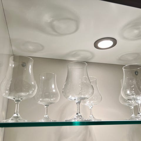Vinglass og vannglass med blå detalj