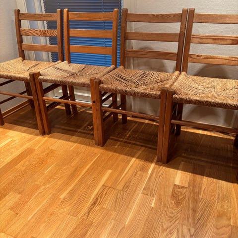 Ønsker å kjøpe originale ubehandlede jærstoler med 4 spiler. Er interessert i 4 stk. Men kan også kjøpe enkeltvis. Med armlene er også interessant.
