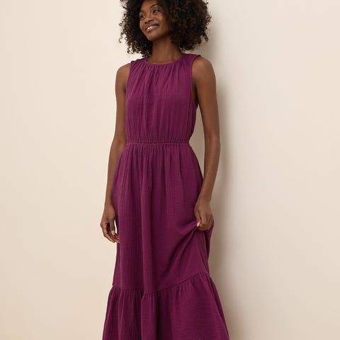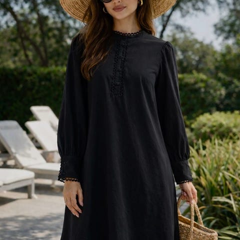 Brun kjole fra hm i 100% økologisk bomull med lommer på siden. Ganske vid kjole i A-modell. Har noe merker etter deo (se bilde) men ikke noe som syns når man har den på.