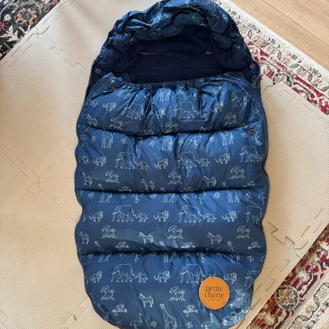 Vognposen er universal og passer til de fleste barnevogner på markedet. Petite Chéries vognpose har et ytterstoff i polyester som er vind- og vannavstøtende. Innermaterialet er laget av myk og varmende fleece. Innsiden har hull for 5-punktssele. Vognposen har to glidelåser på hver side.