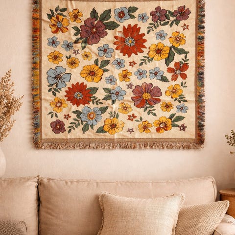 Teppet er helt nytt, med høy kvalitet og vakker struktur som både kan brukes som sofapledd, sengeteppe eller dekorativt veggteppe. De fine frynsene rundt kanten understreker det eksklusive preget.