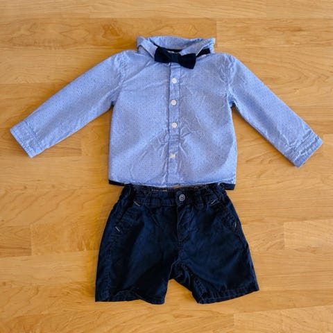 Kjempe søt set med «Handsome just like my daddy» print. Det står Størrelse 70 på klærne.