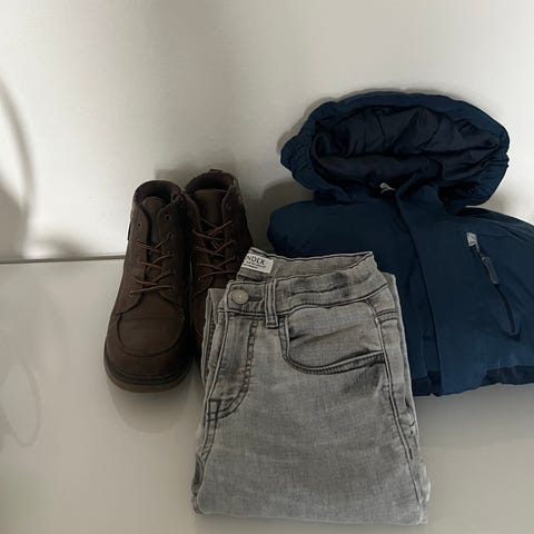 Sko og jakke som er brukt hovedsaklig til og fra bursdag og i finere anledninger.