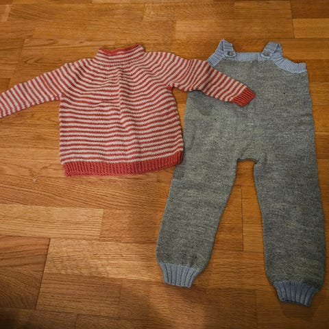 Strikkegenser med hette str. 92