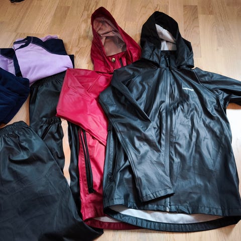 Veldig lite brukt kanskje 3-4 ganger regntøy fra Norheim selges billig for 250 kr. Str er 12 år Kommer fra dyr og røykfri hus kan sendes