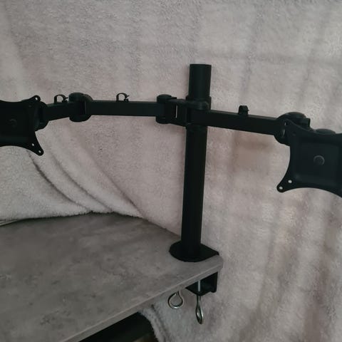 Selger et stabilt og justerbart skjermstativ for opptil tre skjermer. Passer godt til hjemmekontor eller gaming-oppsett der man vil frigjøre plass på pulten og få bedre ergonomi.