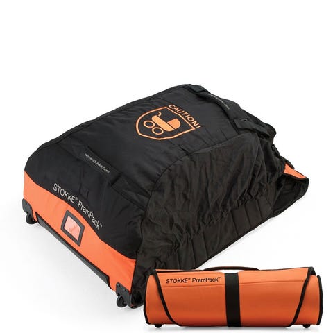 Jeg leier ut en Stokke PramPack, som er anbefalt av flyselskapene som trygg embalasje til barnevogner når du skal ut å fly. Den har hjul så den er lett å trille med seg, og kan rulles sammen når den ikke er i bruk.