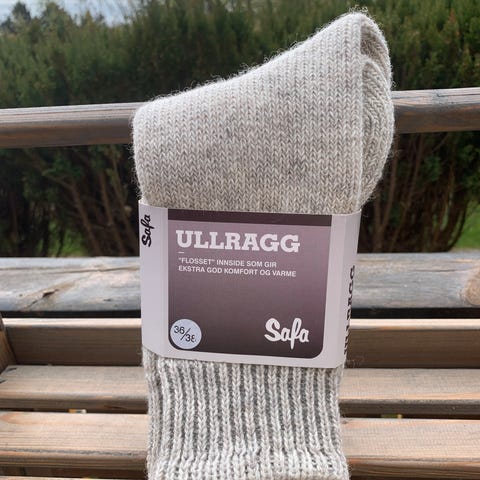 Nye ullragg sokker str. 36/38 selges. «Flosset» innside som gir ekstra god komfort og varme. 70% ull, 30% polyamid.