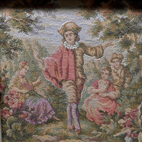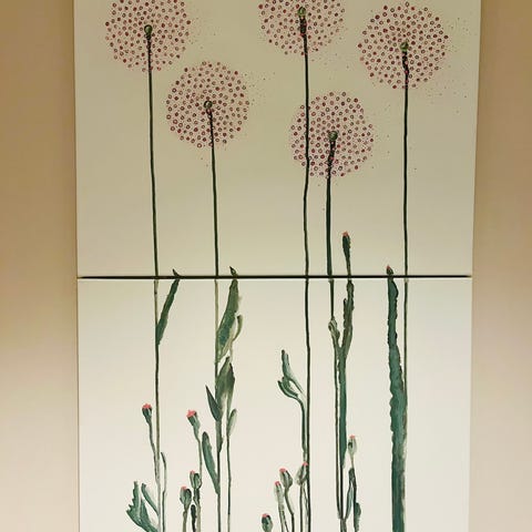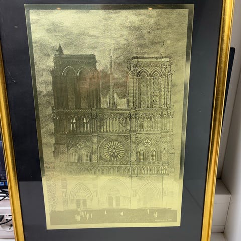 Stort kunstverk fra G&C interior Danmark, ca 180x80cm stort. Noe slitasje på noen av hjørnene på rammen. Spør du meg; kun sjarmerende!
