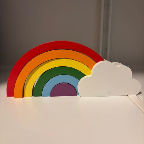 Regnbue i 8 deler til lek eller dekorasjon på barnerommet. Stable eller bygg labyrint, tuneller m.m. Kjempefin for utvikling av øye-hånd-koordinasjon!