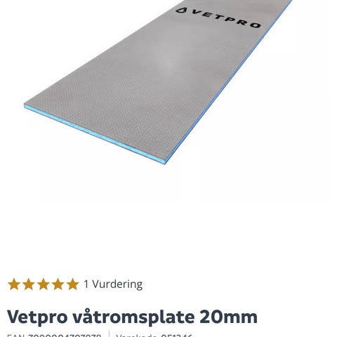 Vetpro monteringsskiver brukes sammen med våtromsskruer til våtromsplater.