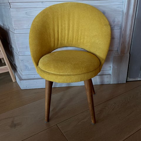 vurd. solgt. Sittehøyde: 33 cm. Bredde rygg: 44 cm. Dybde: 33 cm. Stolen er i god bruks stand.