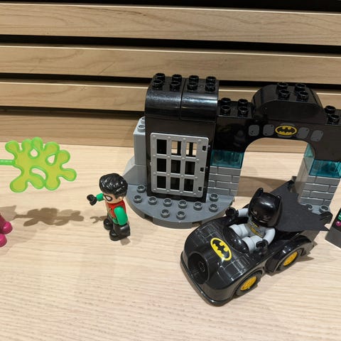 Båt med bilbane, bil og hai følger med.