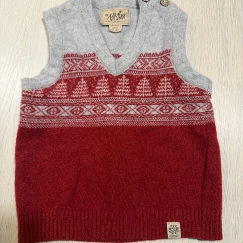Nydelig julevest i ull fra MeMini str. 116, men stor i str. selges for 150kr.