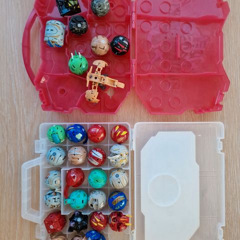 19 bakuganfigurer, 15 myke kort, 15 harde kort, 38 spillbrikker og et bakugan spillbrett. Alt fungerer som det skal, og kjøpsverdien er for over 5 000kr.