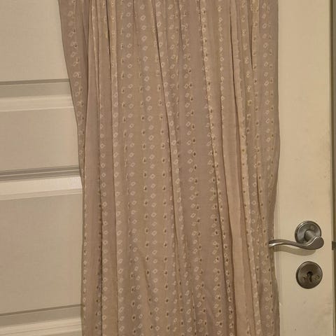 Lang,smal kjole i satenglignende stoff. Behagelig på. Tubekjole med føyelig strikk bak