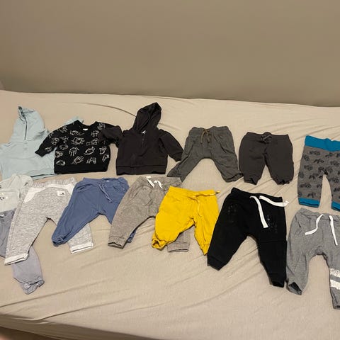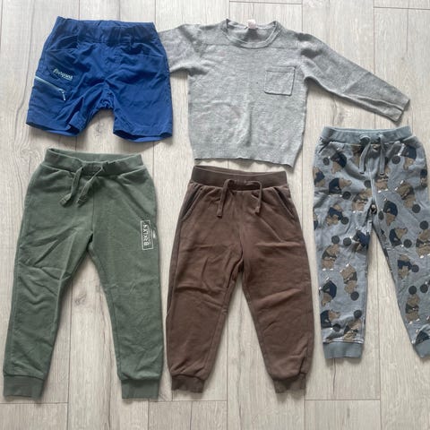 Pent brukt pakke inneholder 2 hettegenser og 3 bukser, fra Minymo og Coolclub, str. 68. Bukser fra Minymo er liten i størrelse og ikke brukt.