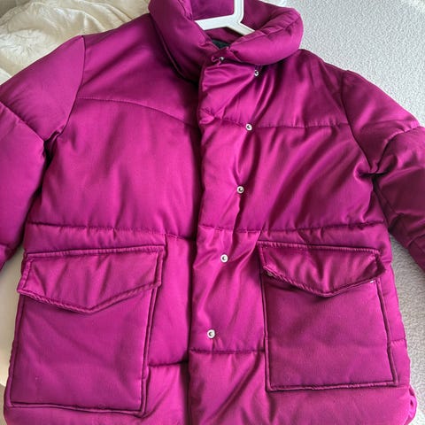Rosa ubrukt jakke med snøring i livet på innsiden.