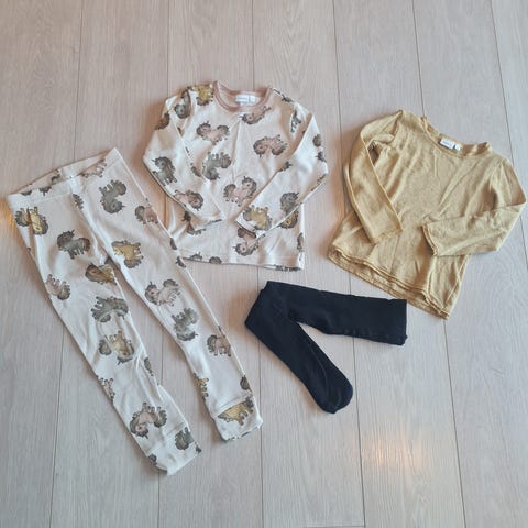 Str ca 98-98/104. Har også et hjemmestrikket skjørt i samme str.