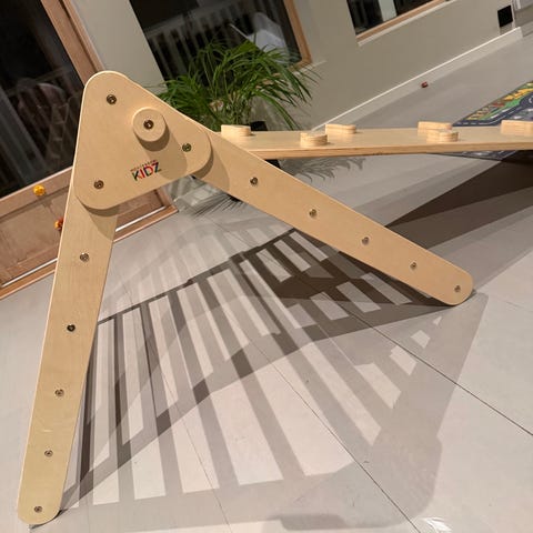 Info fra nettet: Gi barnet ditt en morsom og utfordrende lekeplass hjemme, der barnet samtidig drar nytte av å utvikle koordinasjon, styrke og få mosjon fra en tidlig alder! Dette montessori klatrestativet er enkelt å montere og er designet for å ta minimalt med plass. Det kan enkelt klappes sammen og lagres når det ikke er i bruk. Ved å bruke klatrestativet daglig hjemme, styrker barnet hele kroppen, inkludert armer, skuldre og kjernemuskulatur. Det fremmer utviklingen av grovmotorikk, balanse og koordinasjon, noe som er viktig i barnets første leveår.