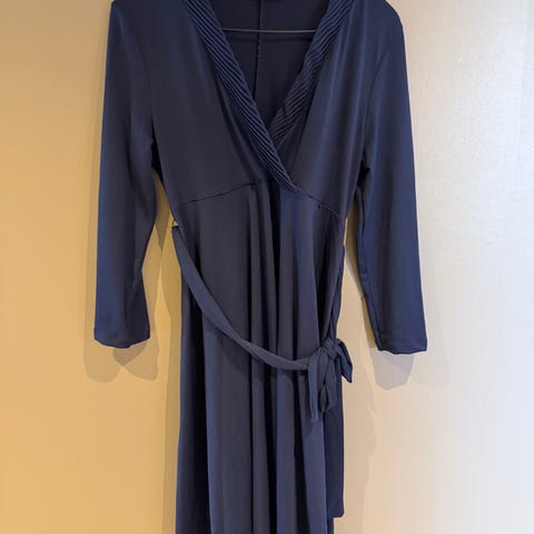 Silkekjole fra (House of) Dagmar. Populært modellen: Lilly Dress i dempet marineblå. Pent brukt, skadefri. Str 36 - litt romslig i størrelsen som alle silkeplagg skulle være.