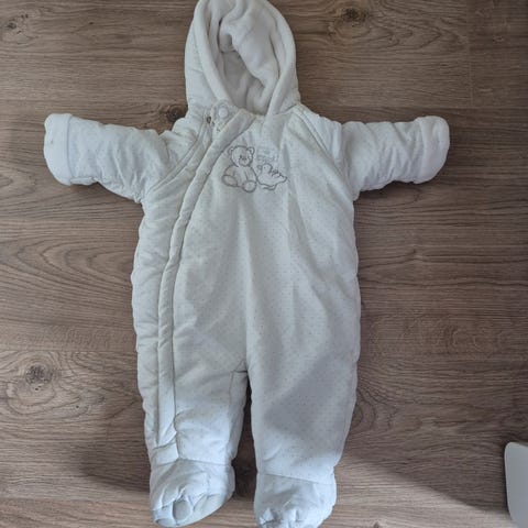 Flott, deilig og varm lyseblå dress til baby ca. 3 mnd. Det står at det er strl. 60 inni, men den passer nok til litt mer enn det også. Veldig myk og behagelig og varm. Flott å ha i vogn disse kalde dager!