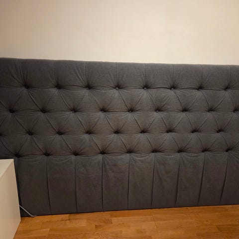 En moderne og klassisk sengegavl i et glamorøst design. Trukket i et slitesterkt velourstoff med ekte Swarovski pynte-steiner. Ordinær pris er 6598 kr.