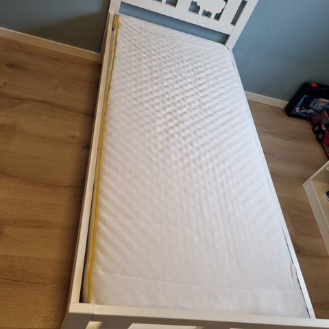Barneseng 70x160 cm selges. Noen bruksmerker, men like hel og fin seng. Sengehest og madrass kan følge med om ønskelig.