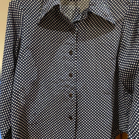 Vakker vintage bluse, kjøpt hos Dianas Salonger på Grüneløkka. Tynt, lett og gjennomskinnelig stoff.