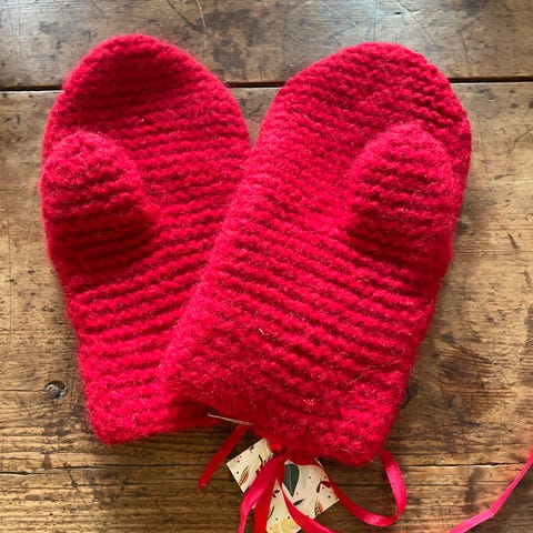Tova ullvotter. Litt misfarging i håndflaten som vist på bilde som ikke er forsøkt fjernet. Str M/L.