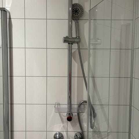 Deante dysjsystem, denne har vært montert på et bad, men har ikke vært i bruk, har dusj og løst håndtak