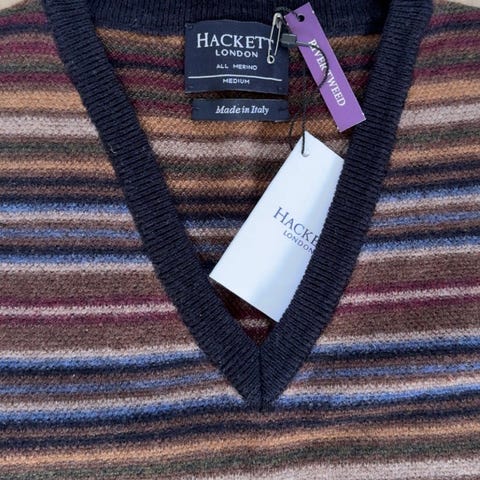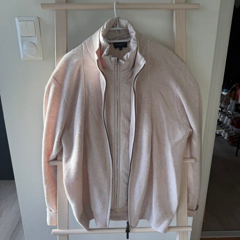 Lys grå genser fra Hacket, 8% cashmere og 92% bomull. Størrelse XL, pent brukt