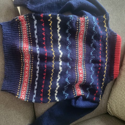 Hjemmestrikket amt-shorts/ genser med korte armer. i utrolig mykt bomulls garn.ca 4-7 år