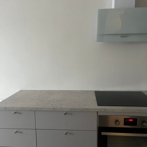Selger en laminatbenkeplate fra Kvik i mønster Tibet. Veldig fin og pent laget benkeplate i beigeaktig mønster, selges da vi må endre hull til vasken.